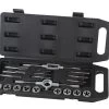 20 x Metric taps: 6 x 1.0, 6 x 0.25, 8 x 1.25, 8 x 1.0, 10 x 1.25, 10 x 1.5, 12 x 1.5, 12 x 1.75, 14 x 1.5, 14 x 2.0, 16 x 1.5, 16 x 2.0, 18 x 1.5, 18 x 2.5, 20 x 1.5, 20 x 2.5, 22 x 1.5, 22 x 2.5, 24 x 1.5, 24 x 3.0mm