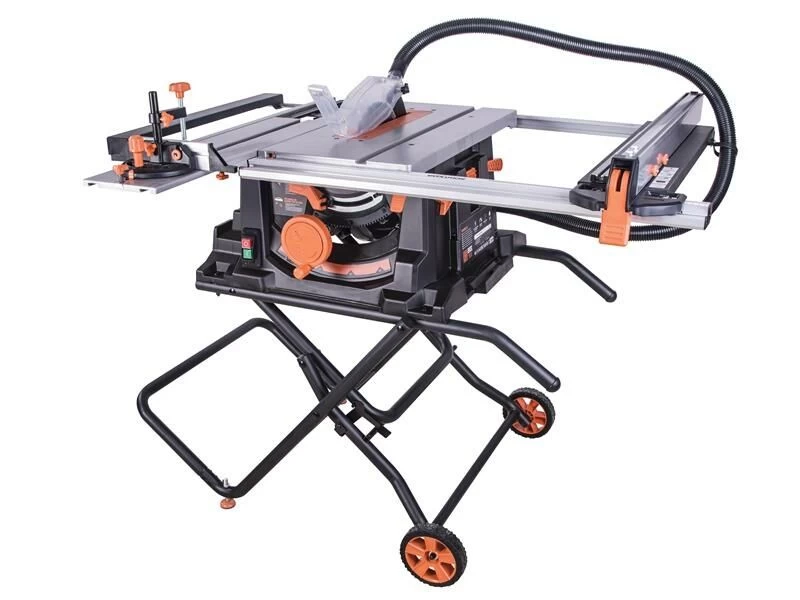 With a fully adjustable blade, with a rise and fall (0-80mm) and the tilt capacity (45° to the left hand), for great cutting versatility and a sliding carriage system is available to the left-hand side. The mitre gauge with an adjustable face-plate incorporates quick-access positive angle stops from -60Ë to +60Ë. Multi-Function, versatile table-top with integral quick-deploy table extensions to the right and left-hand sides.