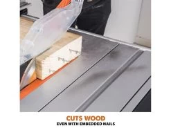 The Evolution RAGE 5-S Multi-Purpose Table Saw cuts through a variety of materials including plastic, mild steel, non-ferrous metals, wood and even wood with embedded nails, all with a single blade. Meaning you are never required to change blades, for faster work and less downtime. When cutting mild steel the saw produces no heat, no burrs and virtually no sparks. The cuts are clean and cool to touch, creating an instant workable finish.