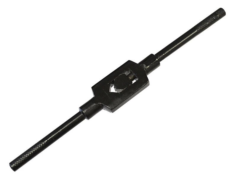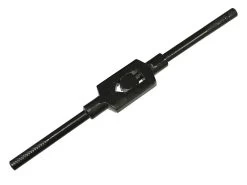 Industrial quality bar type tap wrench manufactured from a high-quality steel. The wrench body is black powder-coated and houses two steel jaws. The handle is knurled for positive grip and control.
