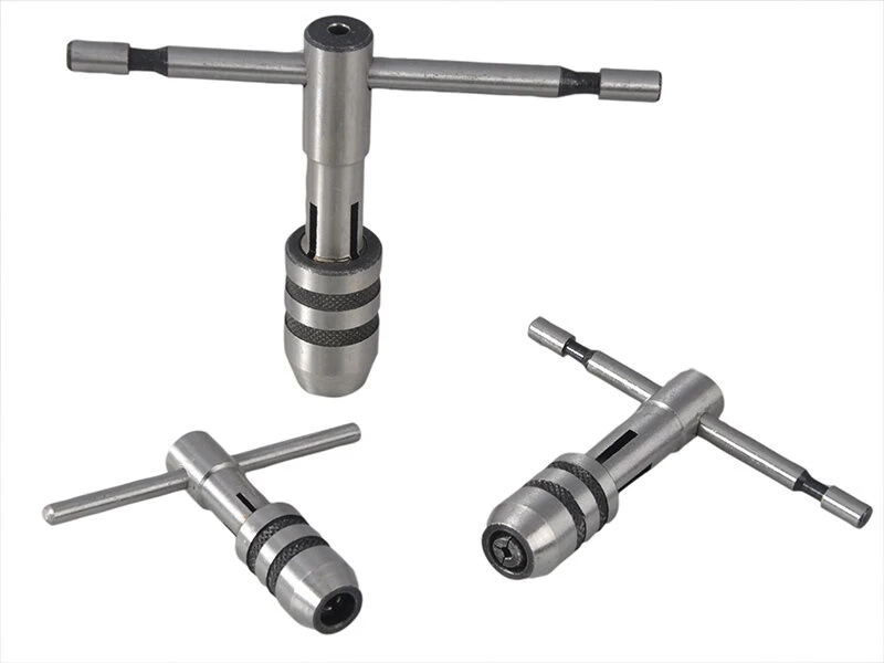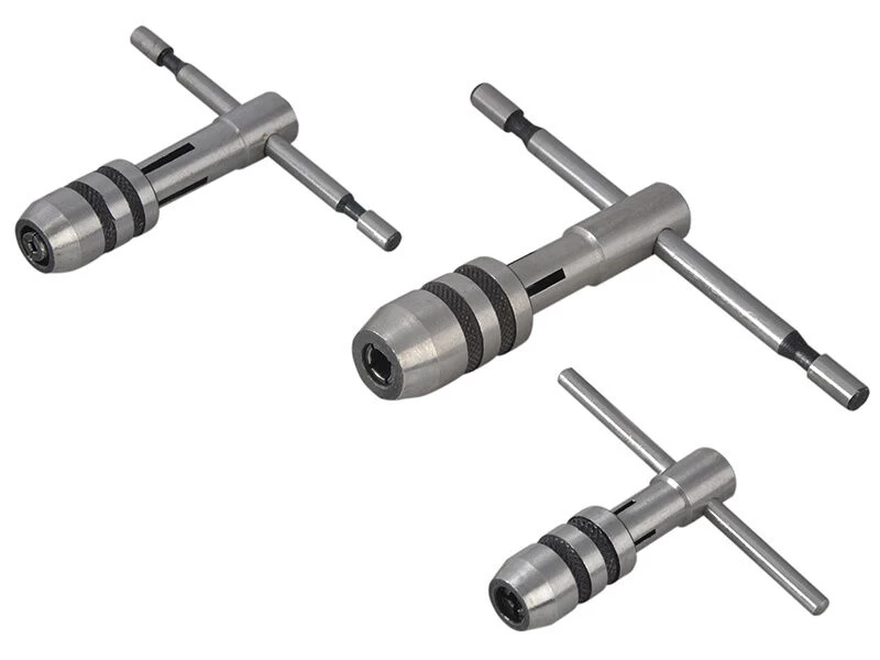 The Faithfull three piece set of hand tap wrenches designed for use in hand tapping and reaming operations. Each wrench features a heavy-duty ductile steel body with a knurled chuck cap. A four point clamping system helps to increase the range of tap sizes that can be used and provide a firm non slip grip for accurate control.