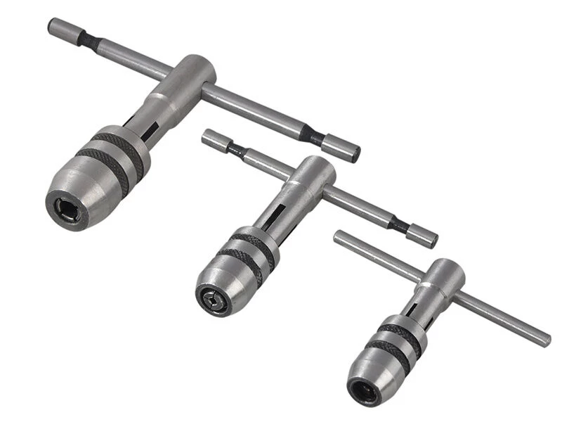 The Faithfull three piece set of hand tap wrenches designed for use in hand tapping and reaming operations. Each wrench features a heavy-duty ductile steel body with a knurled chuck cap. A four point clamping system helps to increase the range of tap sizes that can be used and provide a firm non slip grip for accurate control.