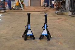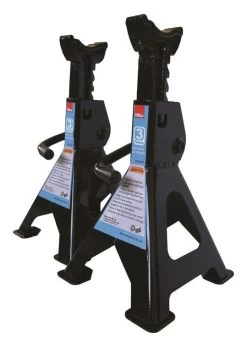 Heavy duty, all-steel construction. Suitable for a wide range of domestic and work vehicles up to 3 tonne. Designed with a large saddle, wide base and large feet for even distribution of weight and increased stability. Angled teeth in post prevent accidental release with self-locking ratchet. A key requirement while working under or around a vehicle. Lifting range: 288-425mm.
