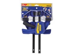 IRWIN QUICK-GRIP® Quick-Change™ Medium-Duty Bar Clamps can be converted from a clamp to a spreader in seconds, with a clamping hold load of 136kg. The lockable swivel jaw enables uneven surfaces to be clamped and it is fitted with square XP-style protective pads to protect the work surface from damage.