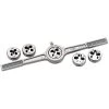 • Set includes T-handled tap wrench, double-ended tap wrench, die handle, Metric and Imperial thread gauge and screwdriver.