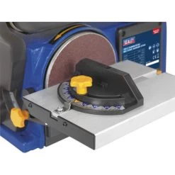 • The sanding disc table can be tilted to any angle up to 45°, and is supplied with a mitre gauge for accurate angle sanding.