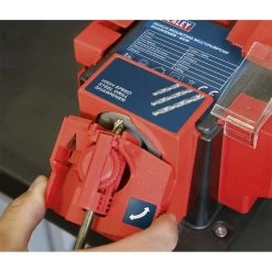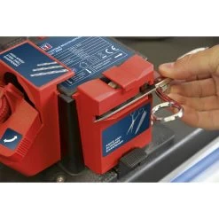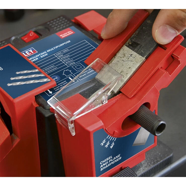 • Also re-grinds chisels and plane blades up to 50mm wide.