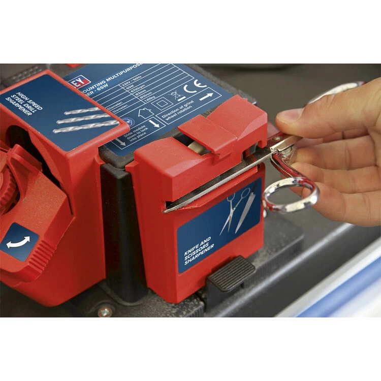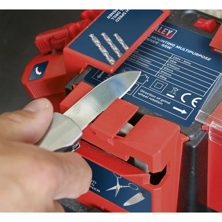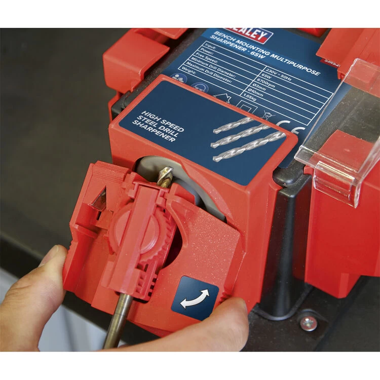 • Sharpens all HSS drill bits from Ø3-13mm, straight edged knives and scissors.