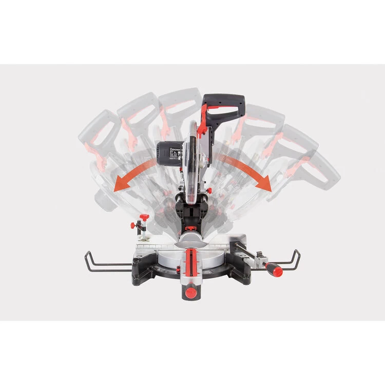 The SIP 12″ Sliding Compound Mitre Saw with Laser utilises a versatile double bevel action of 0° to 45° left to right, as well as a high torque belt-driven motor for powerful performance and smoother, quieter operation.