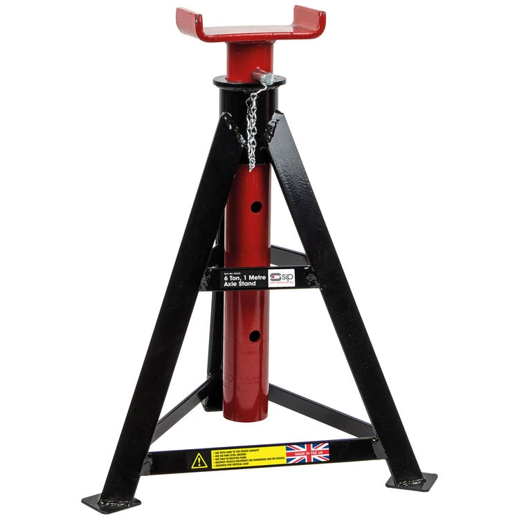 The SIP 6 TON 1mtr Axle Stands are supplied as a pair, therefore totally an heavy-duty 12 TON weight capacity which can lift up to 935mm thanks to a sturdy pin support column for simple adjustment, perfect for a range of larger vehicles.