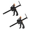 Durable all-steel construction and 2 tone soft-grip handles for enhanced grip and user comfort. AutoJaws⢠technology self-adjusts to material thickness and allows for one-handed clamping. Patented cam-lock mechanism maintains consistent clamping pressure at any material thickness without re-adjustment. Mounts to slotted drill press tables & T-tracks. Delivers a clamping force of 10 – 110kg (25 – 250lb). Supplied with drill press mount & 5/16″ x 18 button head T-bolt.